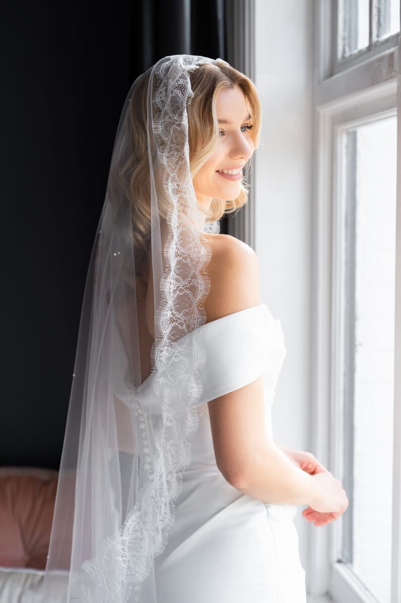 Exclusive Timeless Signature Tulle. This is our finest and most sheer tulle meticulously designed for the most important day of your life. Make a breath-taking entrance to fulfil all your dreams in our gorgeous luxury tulle wedding veil. Your own personal taste is reflected beautifully when you choose one of our signature tulle veils. Both traditional and contemporary styles are complemented by this refined fabric which is especially suited to single, two tier and multiple layered veils. Made exclusively for us in Devon, England, to our own luxury specification we use only the very finest yarn available to give you a ‘barely there’ appearance. The finished fabric is as light as air, smooth to the touch and effortless to wear.