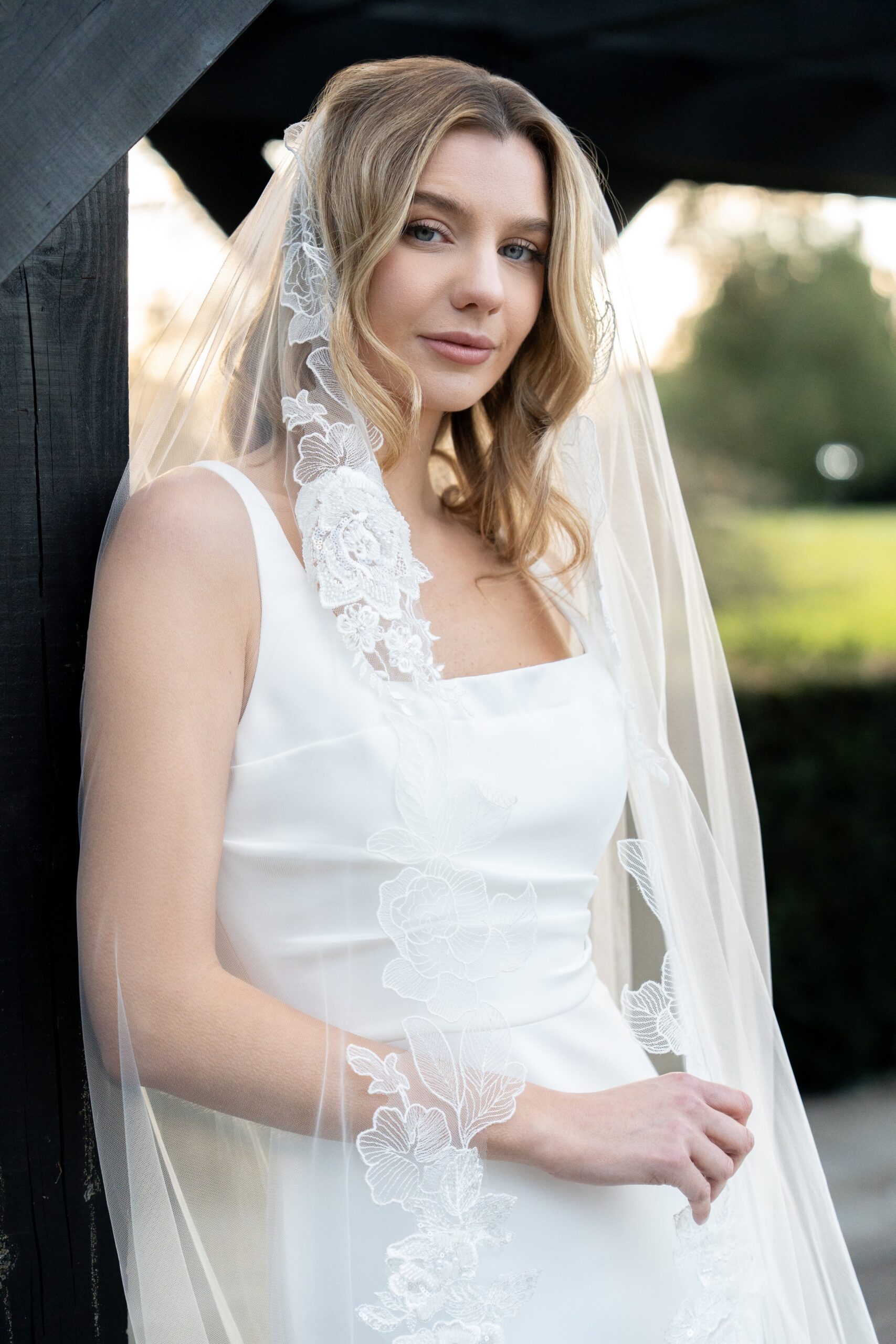 Delicate Beaded Floral Lace Edge Veil