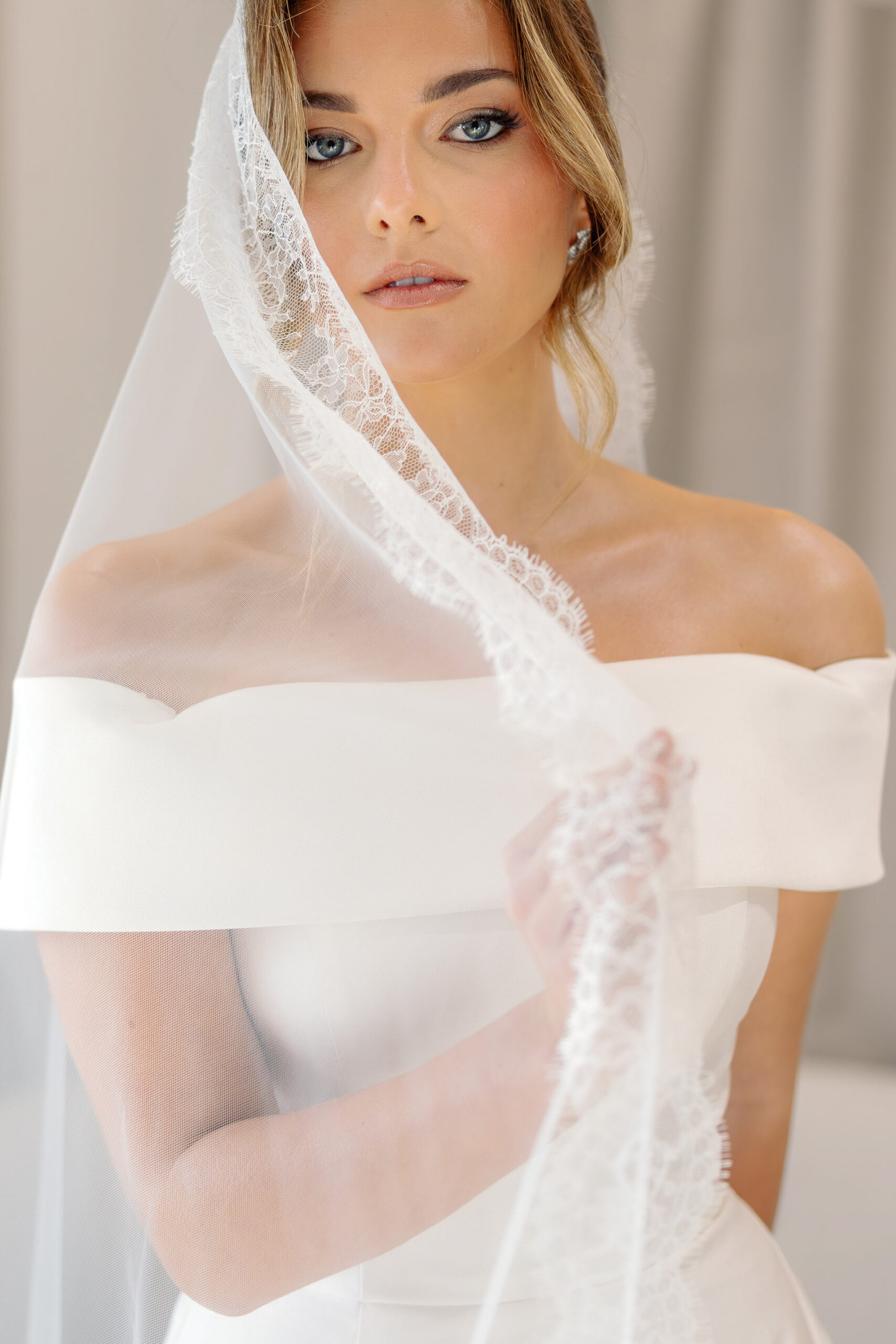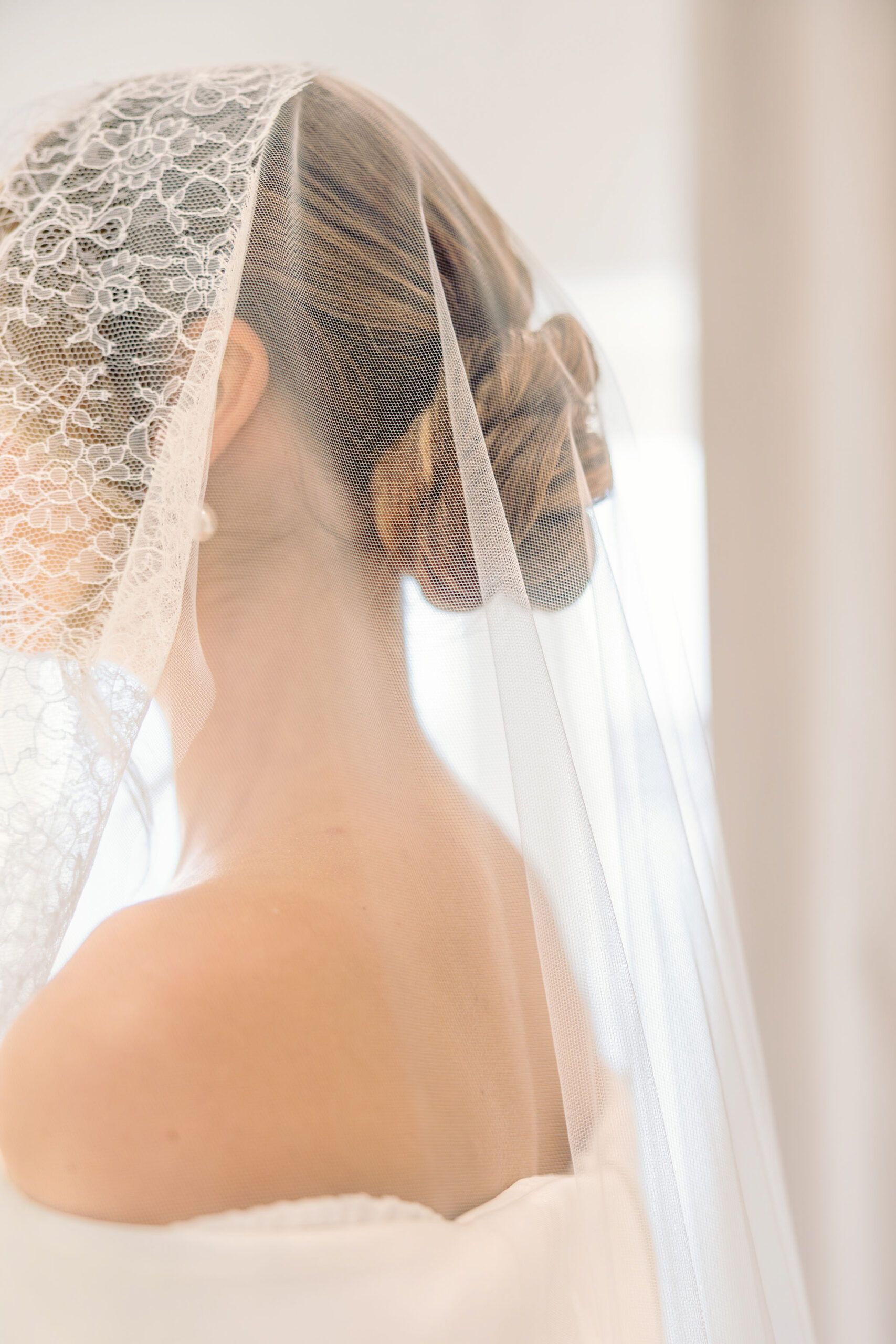 Our Mantilla Veils evoke a sense of classic romance with a singular oval layer, with no gather at the comb, so the veil cascades smoothly from the head. Traditionally worn towards the front of the head, they are crafted beautifully to frame your face, draping gracefully over your shoulders in a cascading silhouette. The size listed is the total length from the top of the comb to the hem of the veil.