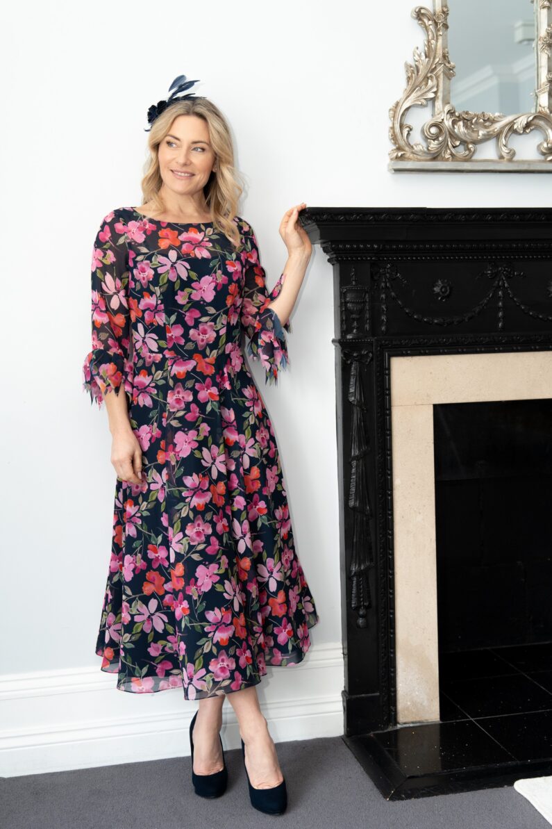 This chiffon bridal gown is everything you have been dreaming of. The matte satin fabric is perfect for the full ballgown skirt, with a chiffon overlay for softness. The structured bodice has clever seam detailing, which creates the perfect bridal silhouette, and the boat neckline gives a modern twist to this dress. Along the neckline to the front and down the low V-neck at the back is a beautiful beaded detail that adds just the right amount of sparkle, to catch the light as you move. The full train to the back of the hem makes this dress the perfect gown for your special day.