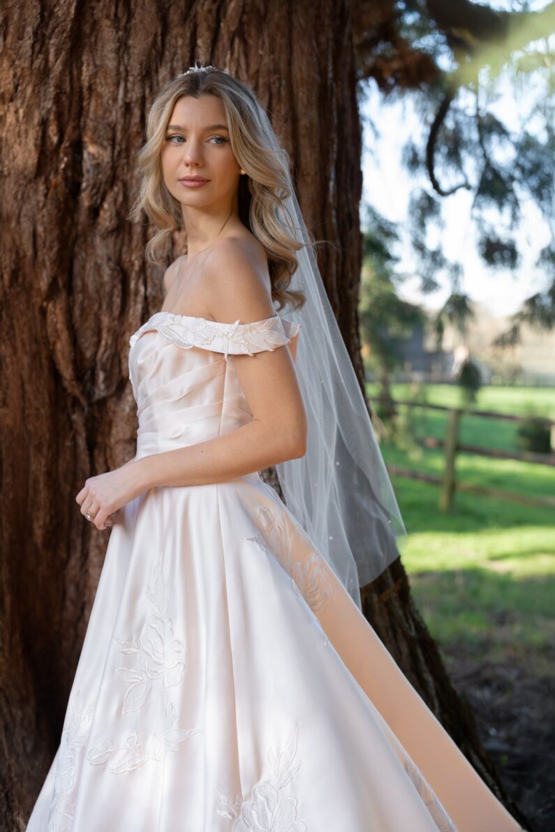 Exclusive Timeless Signature Tulle. This is our finest and most sheer tulle meticulously designed for the most important day of your life. Make a breath-taking entrance to fulfil all your dreams in our gorgeous luxury tulle wedding veil. Your own personal taste is reflected beautifully when you choose one of our signature tulle veils. Both traditional and contemporary styles are complemented by this refined fabric which is especially suited to single, two tier and multiple layered veils. Made exclusively for us in Devon, England, to our own luxury specification we use only the very finest yarn available to give you a ‘barely there’ appearance. The finished fabric is as light as air, smooth to the touch and effortless to wear.