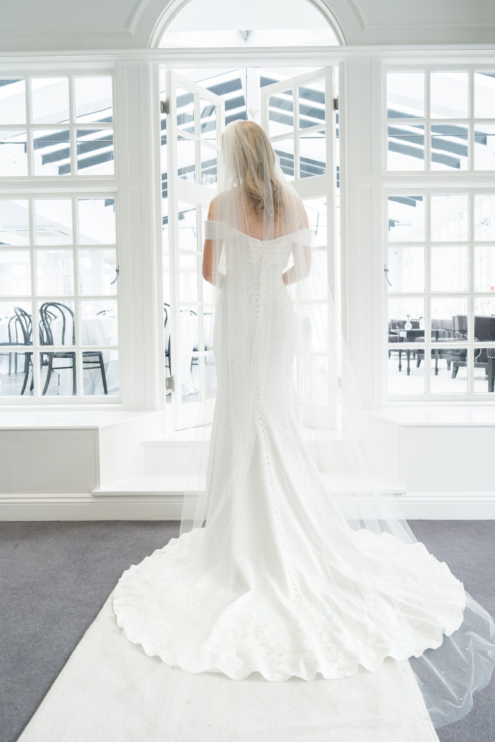 To keep your veil in pristine condition handle with care and hang up for a few days before wearing to allow creases to fall out naturally. Do not wash, steam or iron your veil as this may damage it. Not suitable for dry cleaning.
