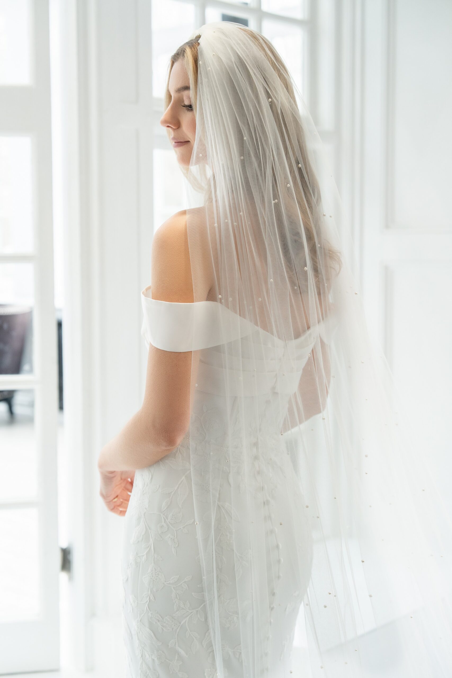 Shimmering Pearl Comb Scatter Veil